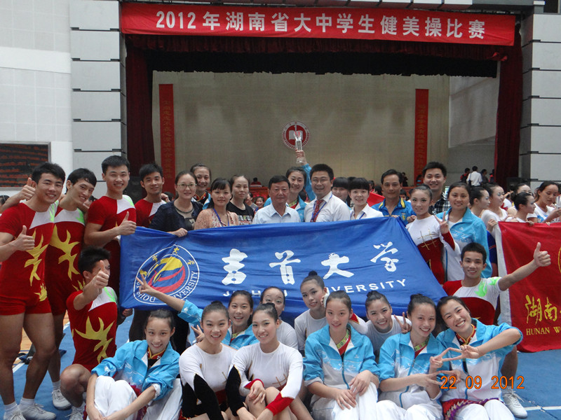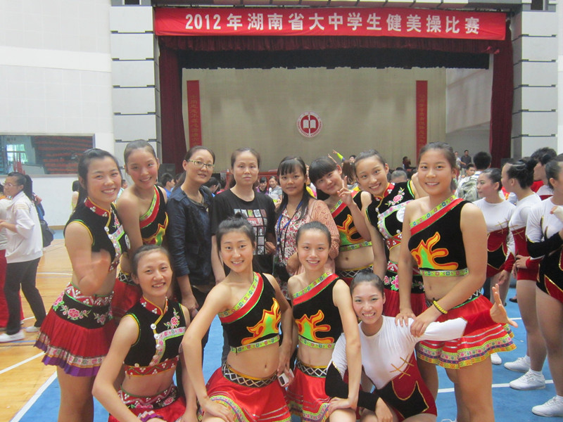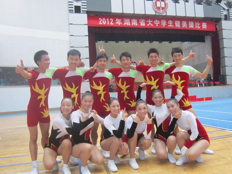 9月21—22日,由湖南省教育厅举办、湖南省学生体育协会协办、长沙市第一中学承办的2012年湖南省大中学生健美操比赛中,我校健美操队发扬顽强拼搏、勇于争先的精神,取得了大学组团体总分第二名;在9个单项中获得了六人器械健美操、男子单人操、男子六人操、女子三人操4项冠军,自由舞蹈啦啦操、男子三人操、女子单人操、女子六人操、混合双人操5项亚军的优异成绩。