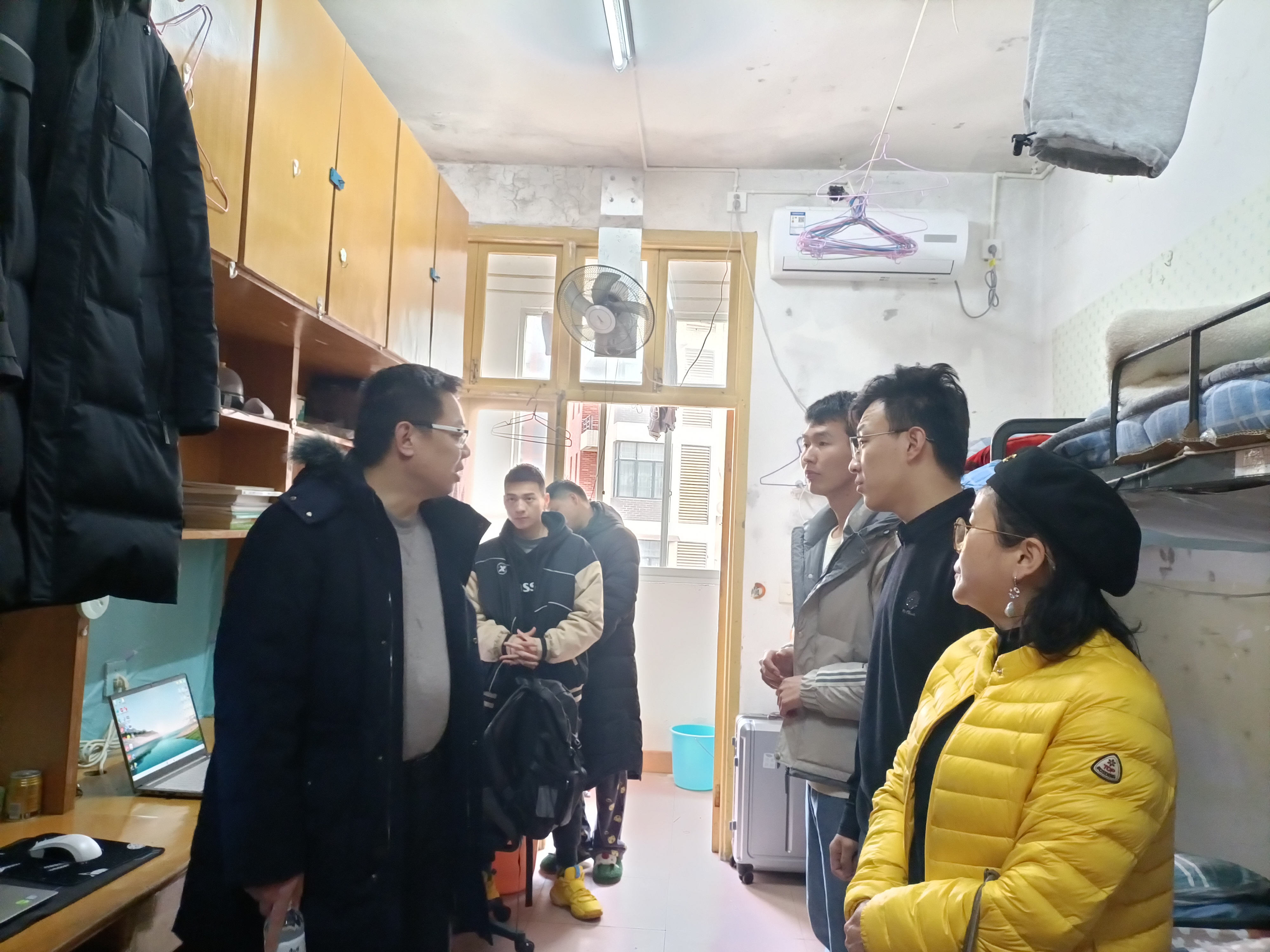 走访过程中,院领导为学生们送上新学期的祝福,同时对宿舍安全问题进行了排查,并嘱咐同学们务必注意宿舍用水、用电安全,对同学们的卫生问题提出整改意见。万义院长、陈玉凤副院长到大田湾校区看望22级体院研究生,针对心理健康、学习压力问题以及如何搞好学位论文等问题与研究生进行了引导交流。院党委书记吴湘军、副院长谌晓安对22级学生提出的问题耐心进行答复,并及时核实相关情况,给出解决措施。同时,也勉励同学们及时做好考试准备,尽快投入新学期的学习中,恢复体育锻炼,提高综合素质。院党委副书记周剑波在走访男生宿舍中,嘱咐同学们要尽快调整好生活作息,预防春季感冒,增强安全防范意识,并就同学们提出的难题,进行耐心解答给予帮助。同学们也就寒假日常生活、未来规划等问题,展开交流,并表示在新学期会继续加油。