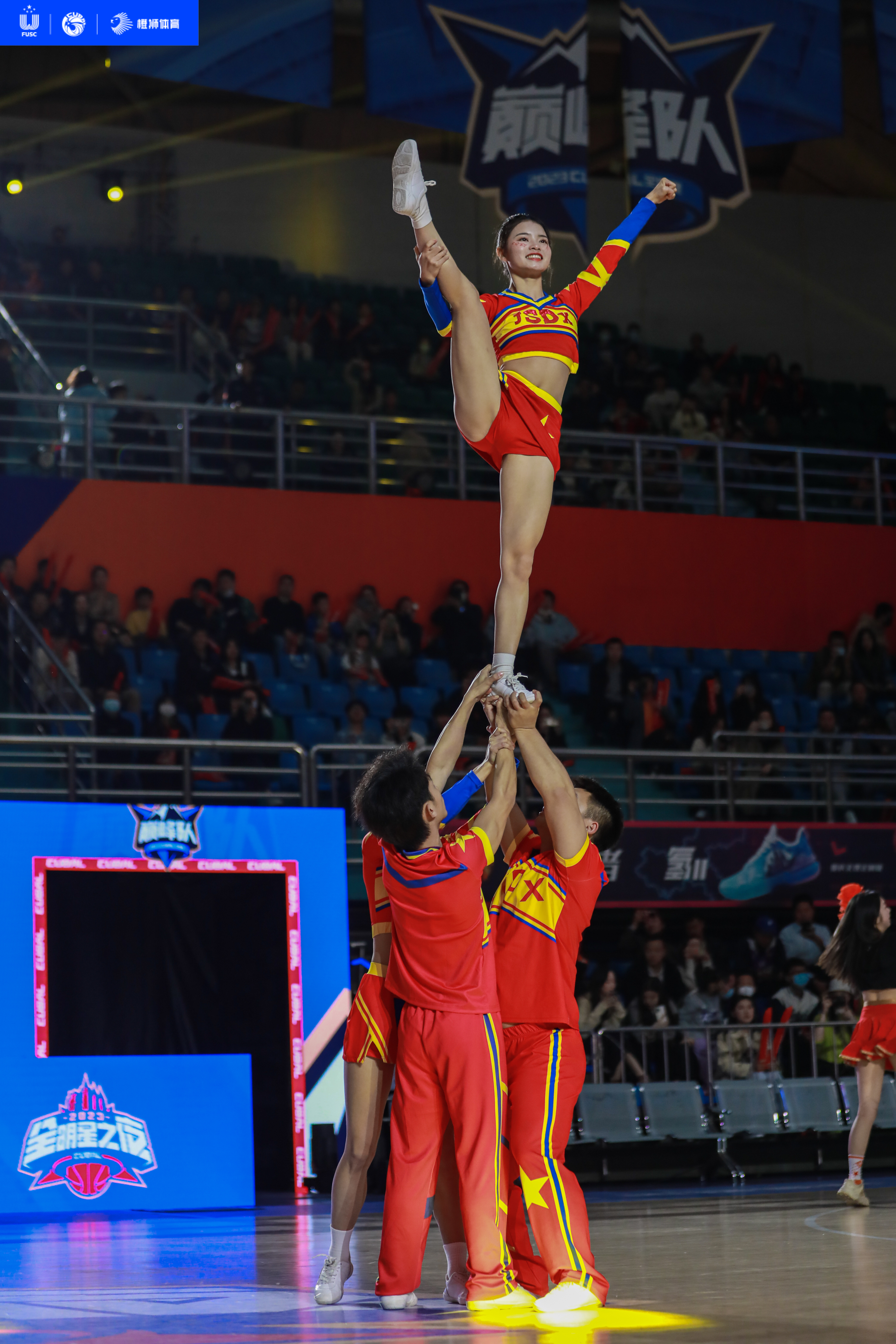 当晚,我校技巧啦啦操队表现了很高的竞技水平,在动感十足的音乐带动下,完成了技巧啦啦操当中抛接、托举和金字塔等高难度动作,以专业的技术动作、活力十足的精彩表演引爆全场,获得了全场球员和球迷的热烈掌声和称赞。