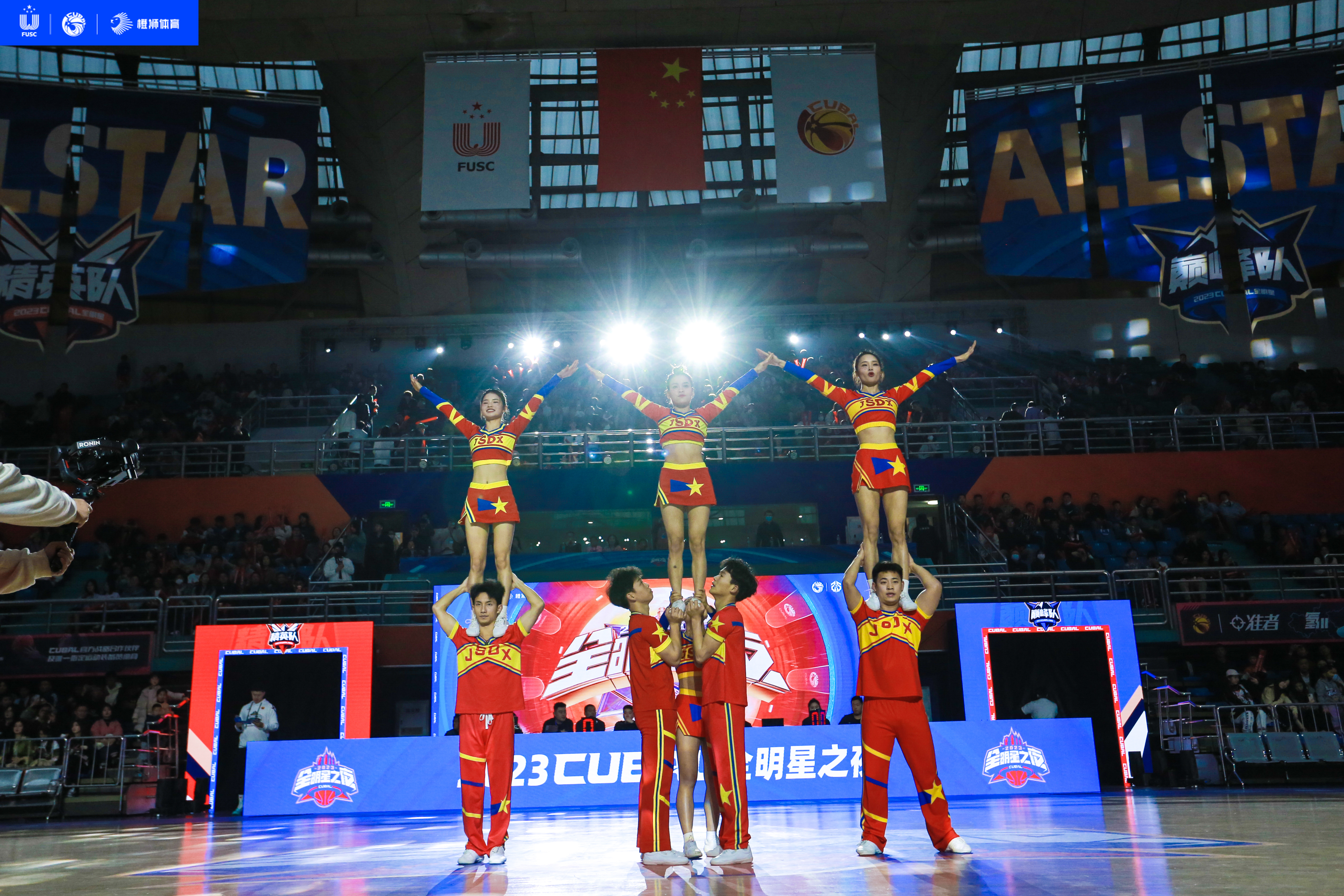 本网讯(杨英 报道)3月4日,第25届中国大学生篮球联赛(CUBAL)全明星之夜在重庆市南岸区乐动力江南体育中心举行。我校技巧啦啦操队应中国大学生体育协会邀请,选派8名优秀啦啦操队员代表,在金牌教练文理中老师的带领下,前往现场与外校啦啦队成员一起进行开幕式表演。