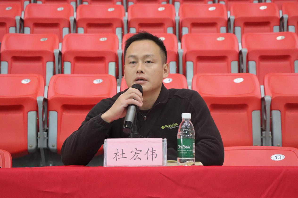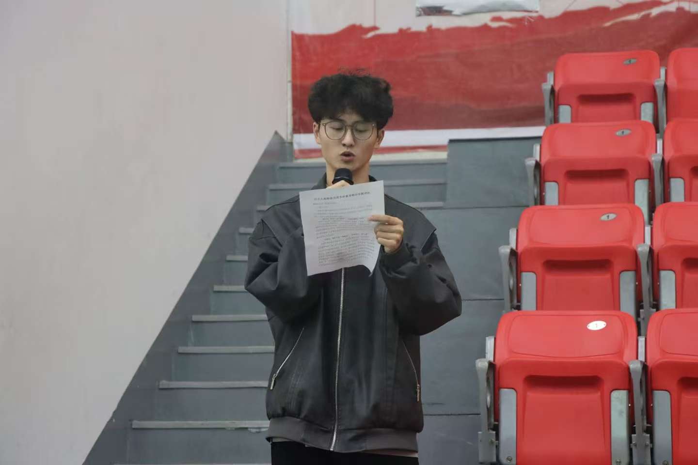 图为2023级体育教育三大班团支书柴成敖作为学生代表发言