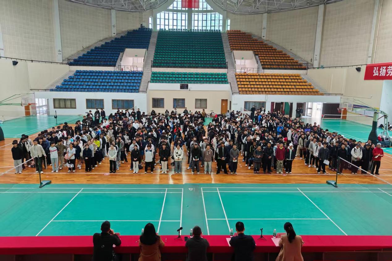 为全面落实学校学风建设工作要求,以最佳状态迎接本科教育教学审核评估,10月30日,我院在砂子坳校区新体育馆隆重举行2025年“党建领航强学风 勤学笃行育新人”学风建设活动启动仪式。院党委书记陈志刚、党委副书记杨川、副院长陆盛华、学工办负责人杜宏伟出席,全体学生参加。仪式由辅导员颜茜主持。