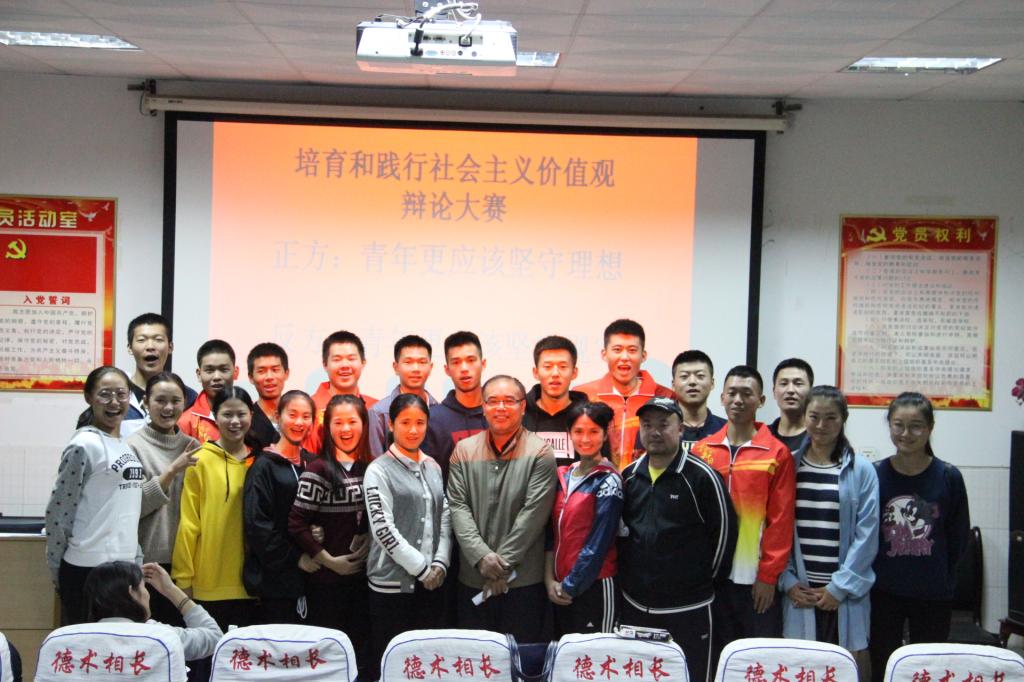 (本网讯:朱嘉欣、于敏)10月13日晚上七点,“培养和践行社会主义核心价值观”辩论大赛在威廉希尔中文官网砂子坳校区体院三楼多媒体教室隆重举行。出席此次活动的领导有我院党委副书记吴永海老师,学工办主任宁珊珊老师,辅导员彭友老师。