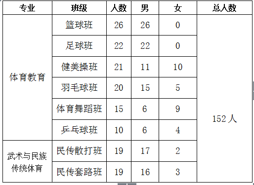 2018年,威廉希尔中文官网将有152名应届本科毕业生如期毕业,其中男生119人,女生33人;体育教育专业114人,武术与民族传统体育专业38人。体育教育专业男生86人,女生28人;武术与民族传统体育专业男生33人,女生5人。有考研意向的共57人,有自主创业想法的共12人,倾向直接就业的共83人,求职意向城市主要集中在生源地、沿海地区、长三角、珠三角。欢迎各大用人单位选聘,具体信息如下: